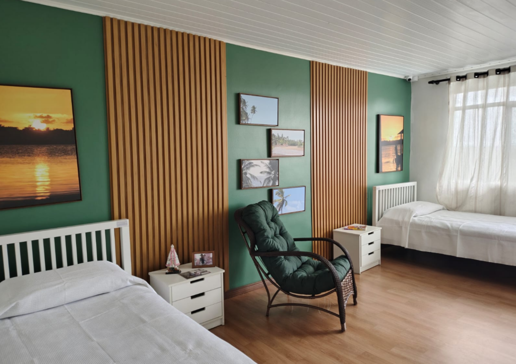 Quartos confortáveis, bem iluminados e ventilados, projetados para garantir segurança, tranquilidade e conforto e privacidade para as moradoras.
